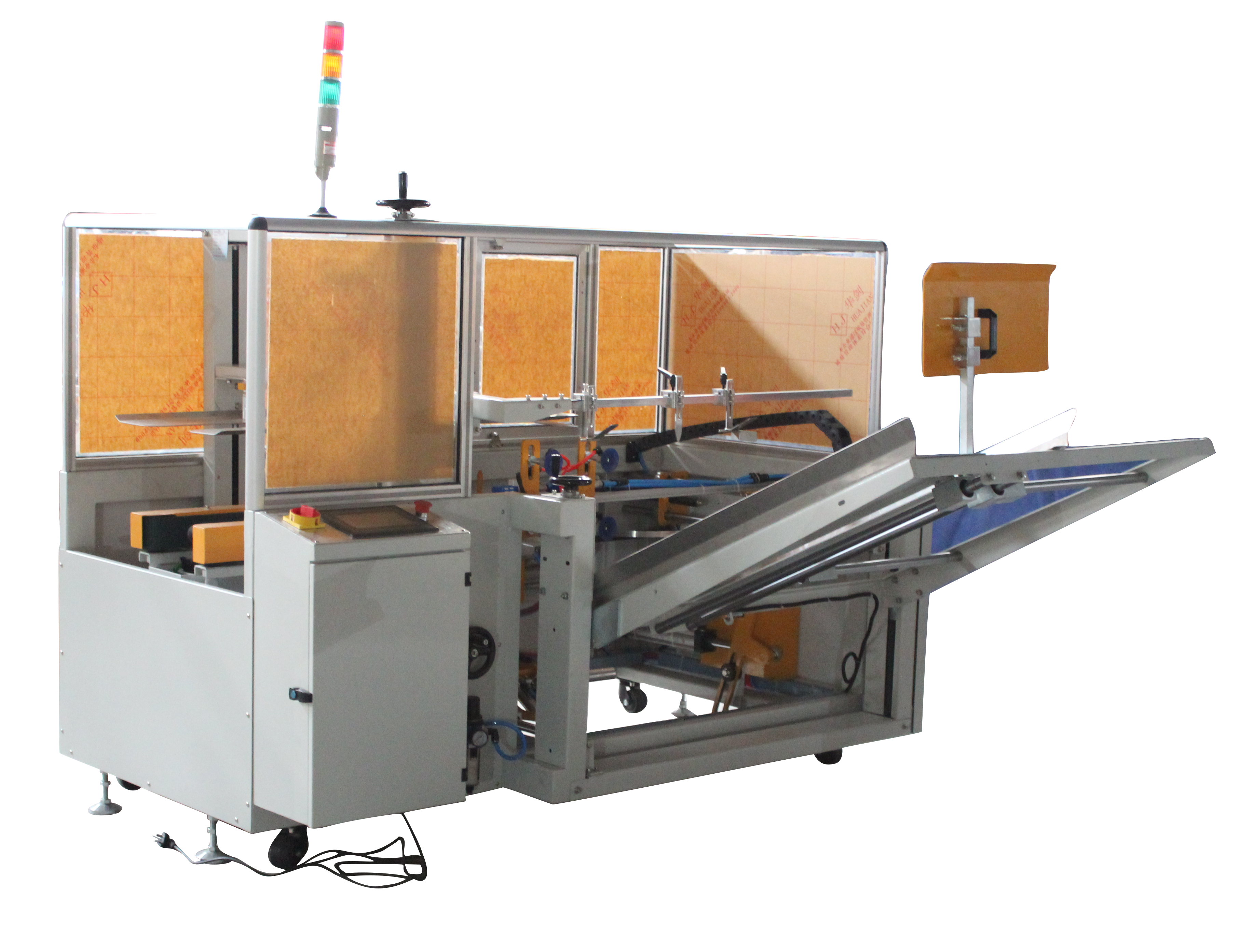 自動開箱機是大批量紙箱自動開箱、折合下蓋、密封下底膠帶的流水線設(shè)備中重要的設(shè)備之一。它的主要用途就是可單機作業(yè),也可與自動化包裝流水線配套使用。